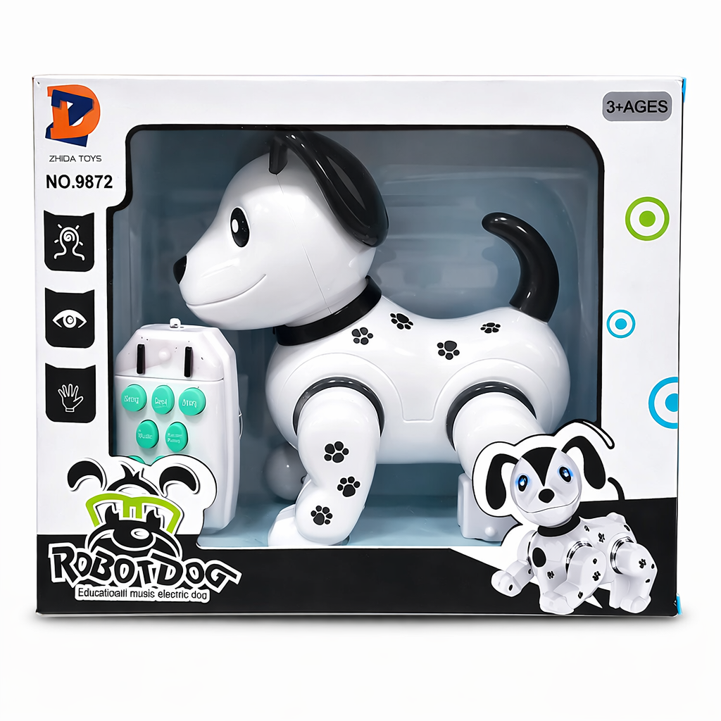 Bring home a smart and entertaining robotic pet with the RoboDog Educational Music Electric Dog (NO.9872). This interactive robot dog toy is designed to provide fun, learning, and entertainment for kids. With its cute design, remote control functions, music, and light features, children can enjoy playing with their very own robotic pet.