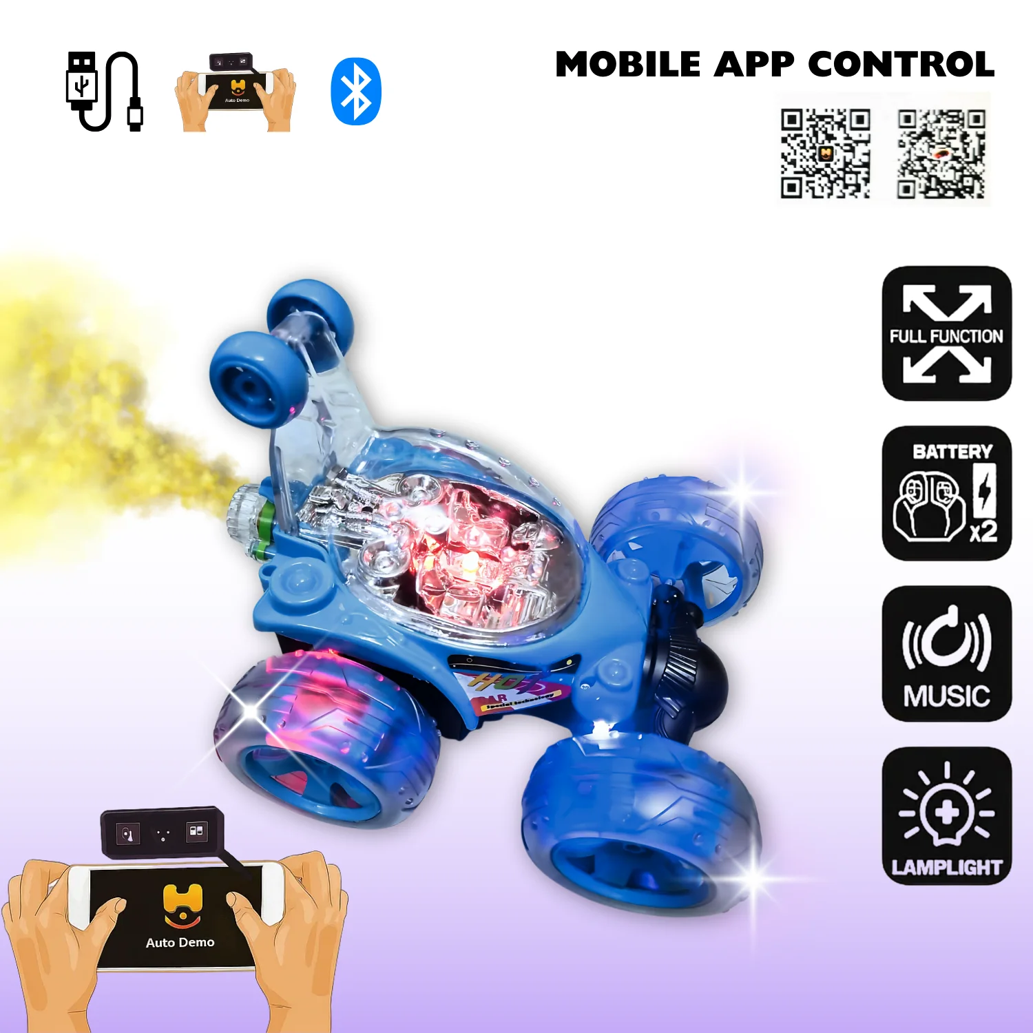 ToyBoi RC Stunt Car – 360° Rotating with Lights, Bluetooth App & Smoke